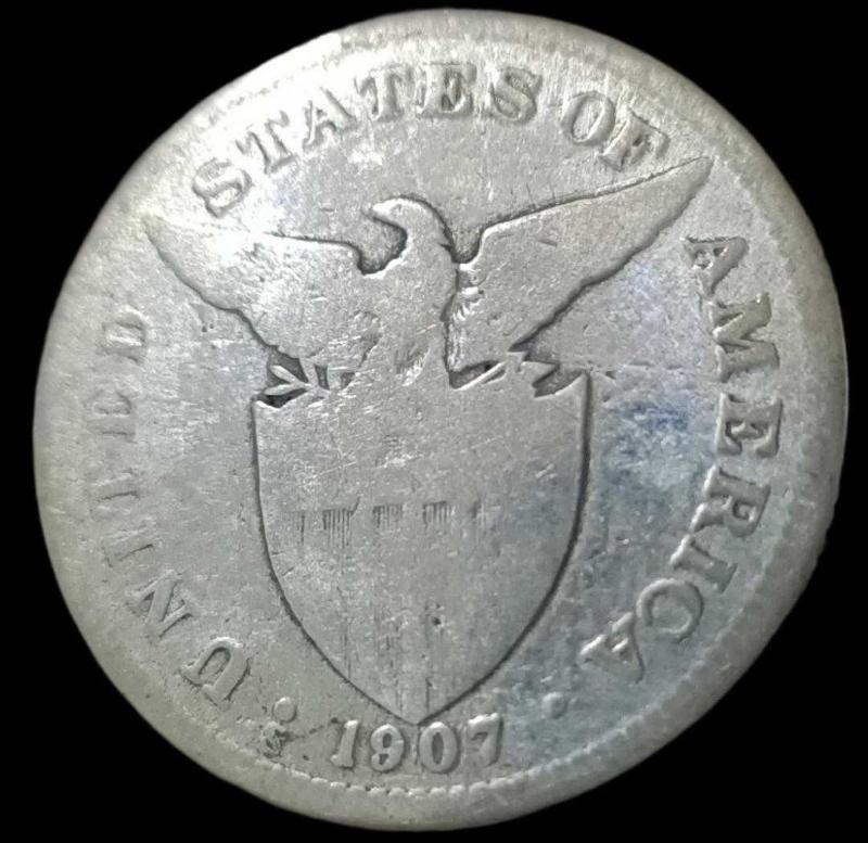 Amerika Filipinleri 1907 S 50 Centavos gümüş 9.25gr Nadir