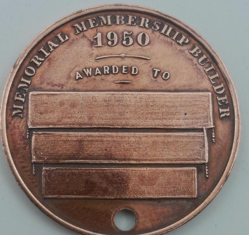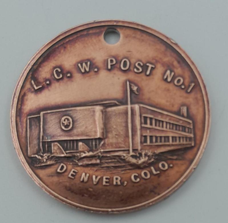 3 cm çapında düşük altın L,C W POST NO 1 DENVER .COLO MEMORIAL MEMERSHIP BULDER 1950AWARD TO Amerkan lejyonu ulusal merkezi 1950 ödül madalyası