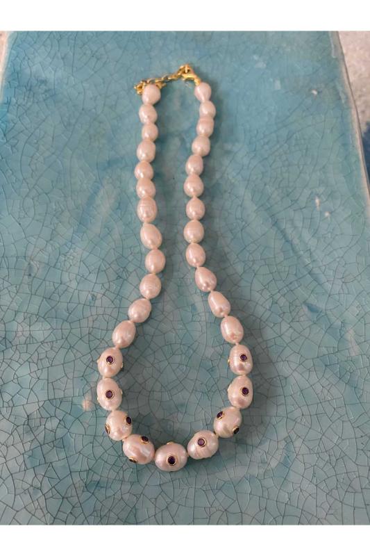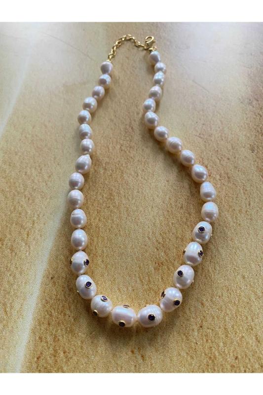 - Gümüş malzeme kullanımı, hem şıklığı hem de dayanıklılığı bir arada sunar ve uzun süreli kullanım için idealdir; - Ametist taşlı tasarım, zarif ve göz alıcı bir görünüm kazandırarak her türlü kıyafetle uyum sağlar; - Barok inci detayları, klasik ve zamansız bir estetik anlayışını yansıtarak, her yaş grubundan kadının beğenisine hitap eder; - İnci kolye, zarafeti ve asaleti temsil eden bir aksesuar olarak, özel günlerde veya günlük kullanım için mükemmel bir seçenektir; Model Kodu: DM000407 Renk: inci Marka: Deniz Mücevherat Kategori İsmi: İnci Kolye