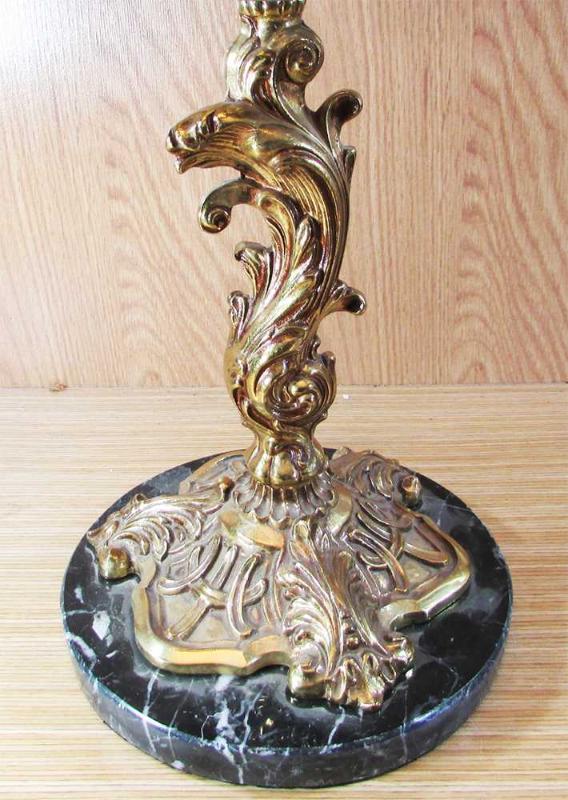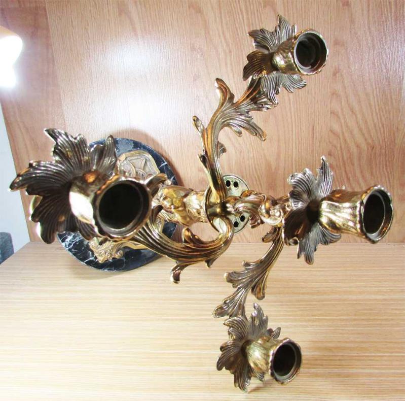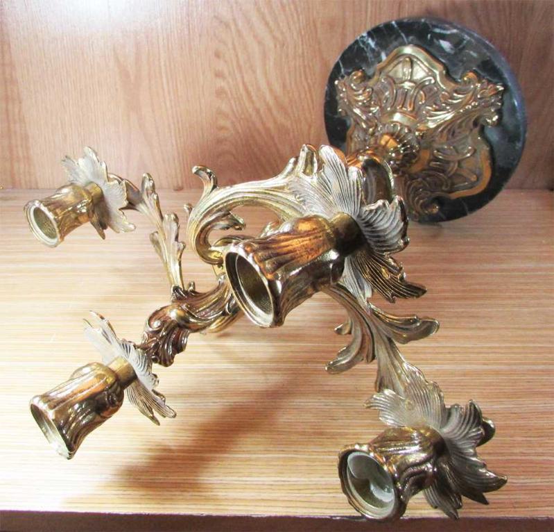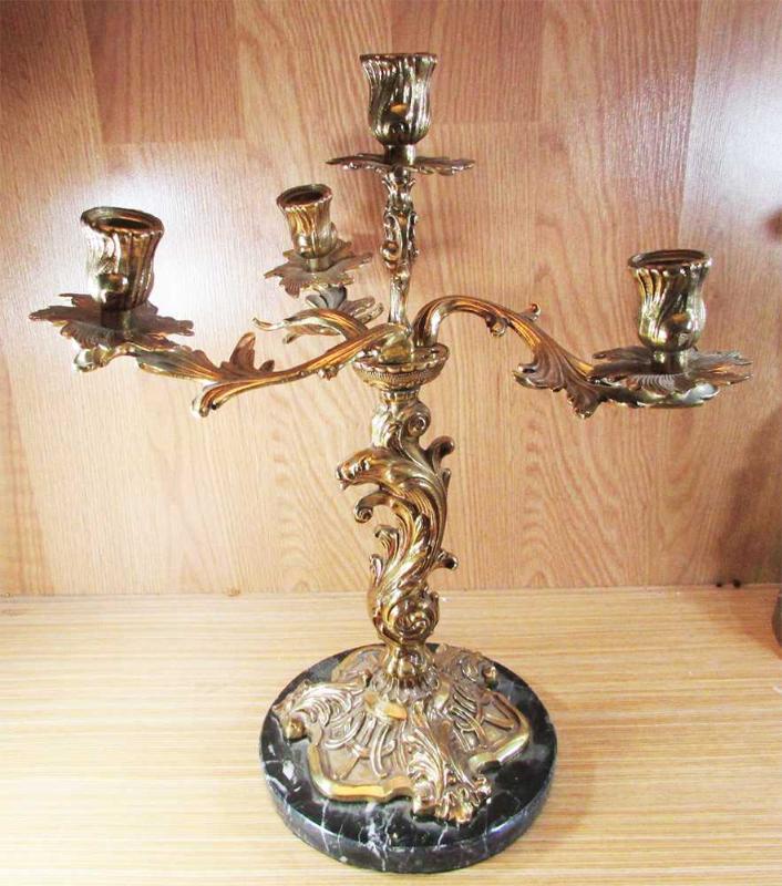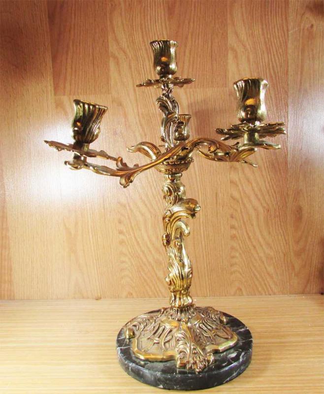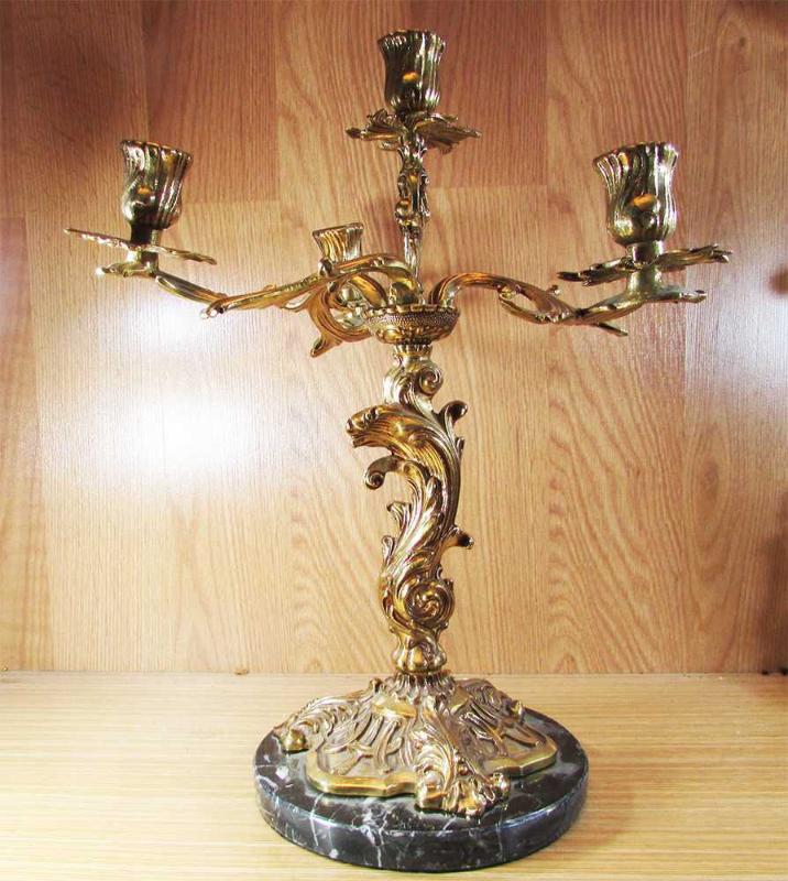 ZAMANINDA,SÜPER BİR İŞÇİLİKLE FLORAL FİGÜRLERLE YAPILMIŞ, HARİKA 4 AĞIZLI AĞIR VE YÜKSEK PİRİNÇ ŞAMDAN,ÜZERİ ALTIN YALDIZLI, TABAN KAİDE MERMER,KOLLARI GÖBEKTEN KISMEN HAREKETLİ, ŞAMDAN İÇİNDEN,İSTENİRE ABAJUR'A ÇEVRİLECEK ŞEKİLDE METAL BORULU, MEVCUDU İLE SAĞLAM VE TEMİZ, SANIRIM AĞIRLIĞI 3kg CİVARINDA VARDIR, TABAN ÇAP GENİŞLİĞİ 20cm,YÜKSEKLİK 42cm