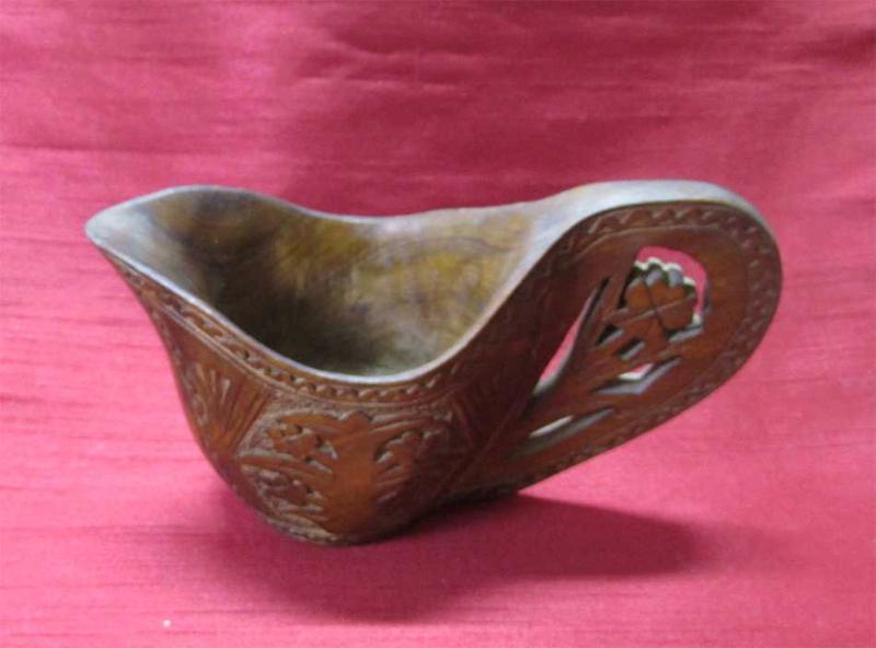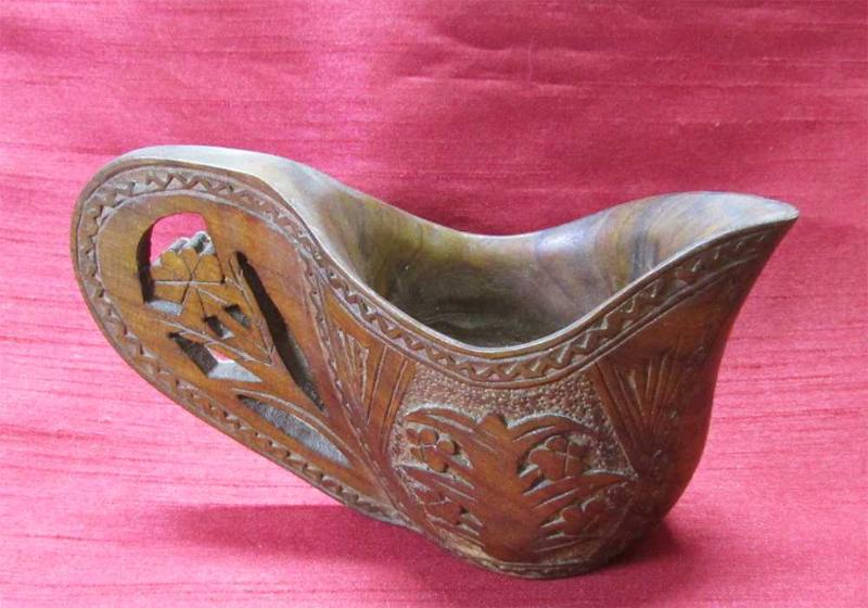 AVRUPA İSKANDİNAV ÜLKELERİNDEN GELENEKSEL, ANTİKA AĞAÇ OYMA DÜĞÜN KUPASI, TAMAMEN SÜPER SANATLI EL İŞÇİLİKLİ, SAĞLAM VE TEMİZ GENİŞLİĞİ 6,5cm,YÜKSEKLİĞİ 10cm,UZUNLUĞU 16cm