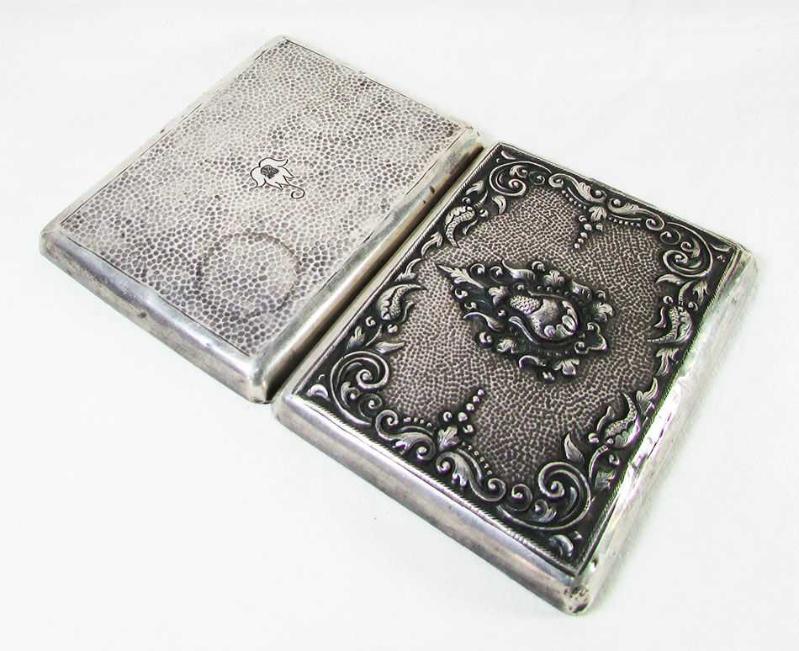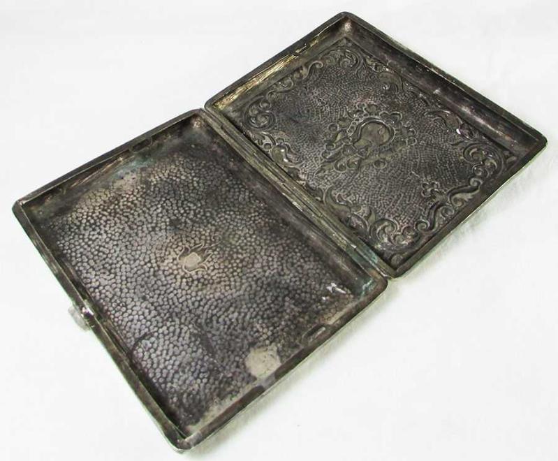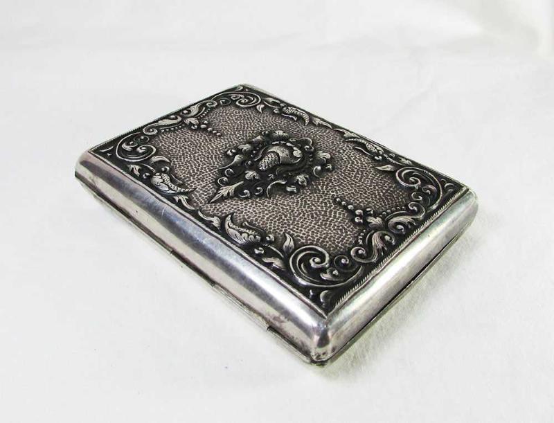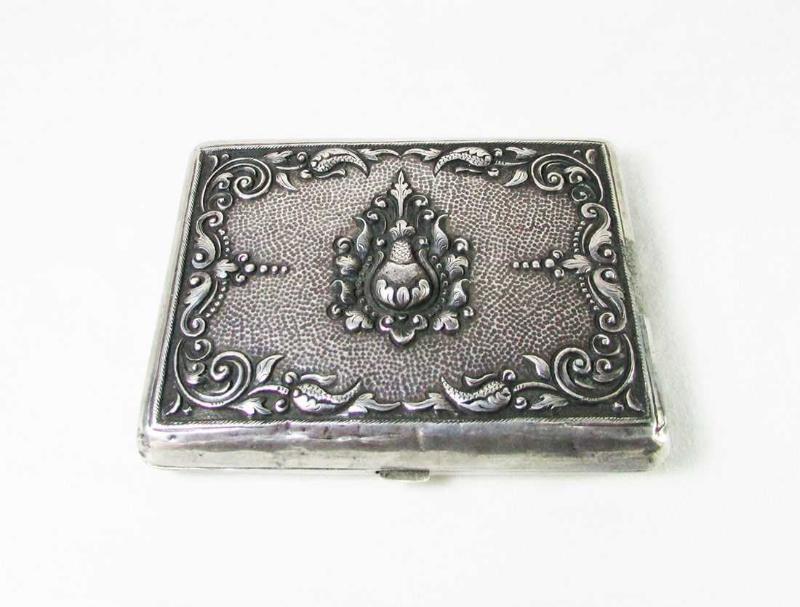 ANTİKA ÇOK GÜZEL GOFRE KABARTMA MOTİF İŞÇİLİKLİ AVRUPA BÜYÜK BOY GÜMÜŞ TÜTÜN TABAKASI ;HARF LOGO VE 835 AYAR DAMGALI 1930 LARDAN KALMA OLDUĞUNU SANIYORUM GÜZELLİĞİNİN DETAYLARI ÜRÜN RESİMLERİNDE GÖRÜLEBİLİR SAĞLAM VE TEMİZ TABAKA KALINLIĞI 28-30mm CİVARI, YÜZEY EBADI 9cmx12cm AĞIRLIĞI 171,4gr NADİR-KOLEKSİYONLUK