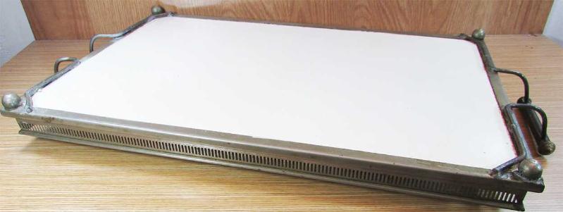 19.YY SONLARI, ANTİKA, AVRUPA İMALATI ÇOK GÜZEL,KOLEKSİYONLUK BYÜK BOY TAŞ TEPSİ, METAL ÇERÇEVE VE KULPLU, TABAN KÖŞESİ SOĞUK DAMGALI, SAĞLAM VE ÇOK İYİ KONDÜSYONDA DETAYLAR ÜRÜN RESİMLERİNDE, KENAR YÜKSEKLİĞİ 4cm, GENİŞLİĞİ 29cm,TEPSİ UZUNLUĞU 43,5cm,KULPLAR ARASI 53cm