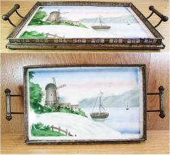 19.YY SONLARI, ANTİKA ÇEKOSLOVAKYA İMALATI ÇOK GÜZEL, KOLEKSİYONLUK TAŞ TEPSİ, METAL ÇERÇEVE VE KULPLU TABANI DAMGALI SAĞLAM VE ÇOK İYİ KONDÜSYONDA DETAYLAR ÜRÜN RESİMLERİNDE, KENAR YÜKSEKLİĞİ 3cm,KULP YÜKSEKLİĞİ 6cm, GENİŞLİĞİ 21cm,TEPSİ UZUNLUĞU 32,5cm,KULPLAR ARASI 40cm