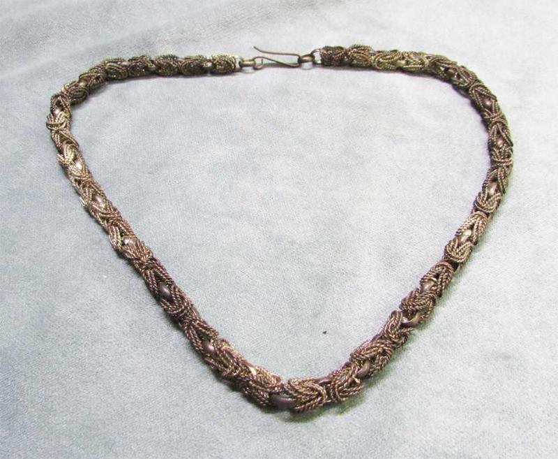 ÇOK DEĞİŞİK VE FARKLI ÖRGÜ TARZLI, BAKIR ÜZERİ GÜMÜŞ KAPLAMA EL YAPIMI, ANTİKA KALIN ZİNCİR TAKI, SAĞLAM VE TEMİZ, KALINLIĞI 7mm,UZUNLUĞU 45cm AĞIRLIĞI 38gr
