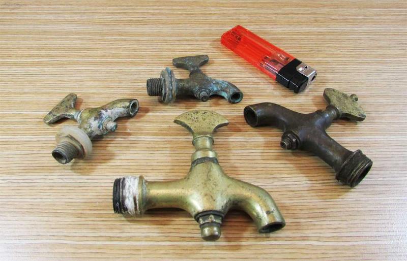 ANTİKA, HEPSİ OLDUKÇA YAŞLI,BÜYÜK İHTİMAL OSMANLI DÖNEMİ BRONZ MUSLUKLAR, ÇEŞİTLİ FORM VE YAPIDA,TOPLAM 4 ADETLİK LOT HALİNDE SATIŞTA, SAĞLAM VE İYİ KONDÜSYONDALAR, YILLARIN İZLERİ ÜZERİNDE,