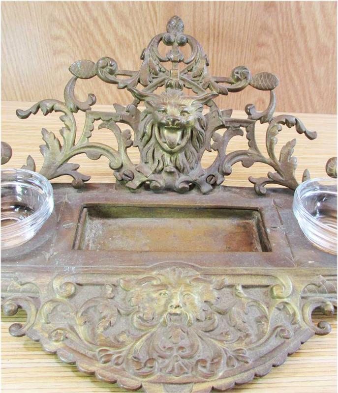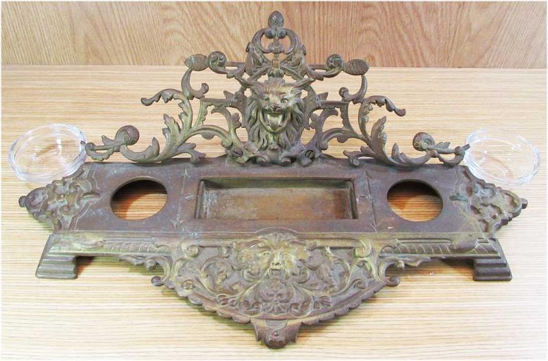19.YY FRANSIZ ANTİKA PİRİNÇ DÖKÜM MASA ÜSTÜ ÇOK BÜYÜK HOKKA YOĞUN HAYVANSAL VE BİTKİSEL FİGÜRLÜ SANIRIM HAZNE CAMLARI SONRADAN YENİLENMİŞ MEVCUDU İLE SAĞLAM VE TEMİZ DETAYLARI ÜRÜN RESİMLERİNDE OLDUKÇA AĞIR YAPILI ARKA YÜKSEKLİĞİ 12,5cm CİVARI GENİŞ YERİ 18cm,UZUNLUĞU 38cm