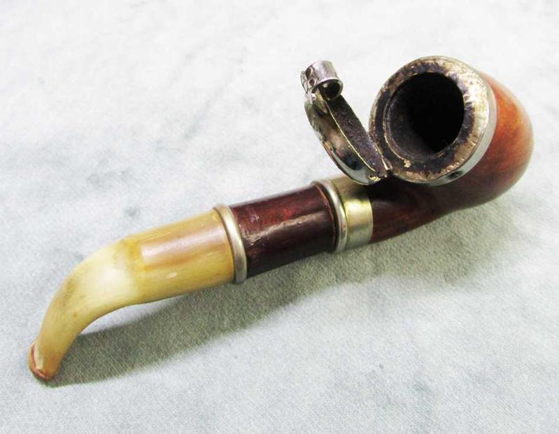 GÜL AĞACI HAZNELİ,BOYNUZ EMZİKLİ, METAL HAZNE KAPAKLI, YAŞI İTİBARİ İLE KULLANIM İZLERİ TAŞISA DA SAĞLAM VE GAYET İYİ KONDÜSYONDA, YAKLAŞIK HAZNE GENİŞLİĞİ 3cm,KAPAKLI YÜKSEKLİĞİ 5cm, UZUNLUK 14,5cm, DETAYLARI ÜRÜN RESİMLERİNDE,