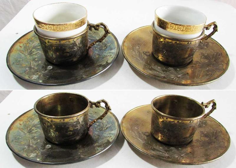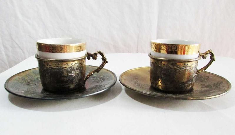 AnTiKa GÜMÜŞ Çift TABAKLI FiNCaN ZARFLARI ve FİNCANLARI..... başlıklı antika/koleksiyon objesinin menşei belirtilmemiştir. 1800-1849 arası dönemine aittir.
