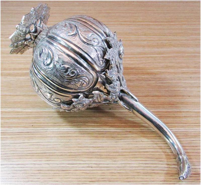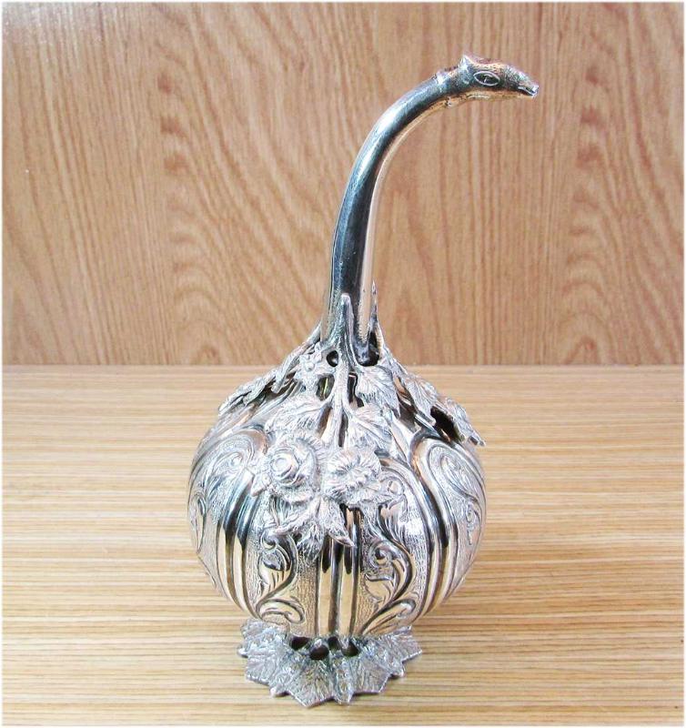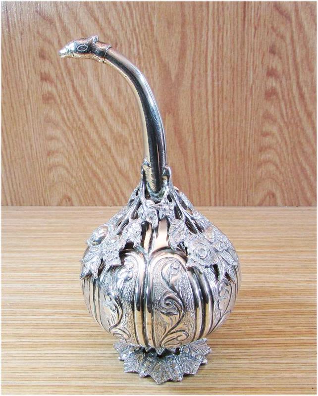 ANTİKA GÜMÜŞ GÜLABDAN, SÜPER SANATLI VE İŞÇİLİKLİ, TERTEMİZ,YÜKSEK KONDÜSYONDA, DAMGA YOKTUR,GÜMÜŞÜ 900 AYAR CİVARI VE SONSUZ GARANTİLİDİR, DETAYLARI ÜRÜN RESİMLERİNDE, YÜKSEKLİĞİ 18cm,AĞIRLIĞI 307gr