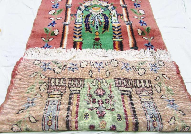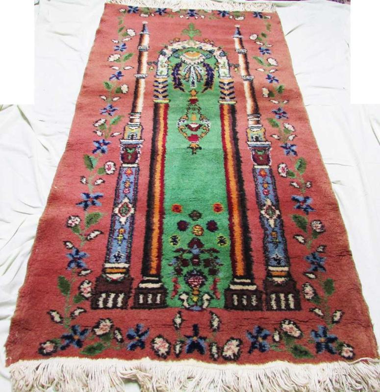 80-90 YILLIK, ANTİKA MİHRAPLI MİNARELİ EL DOKUMA ISPARTA HALI SECCADE, MEVCUDU İLE SAĞLAM VE GAYET İYİ KONDÜSYONDA, GÜZEL BİR SİLME İŞLEMİ İLE KULLANILIR HALE GELİR, SAÇAKLARI HARİÇ ÖLÇÜSÜ 80cmx150cm