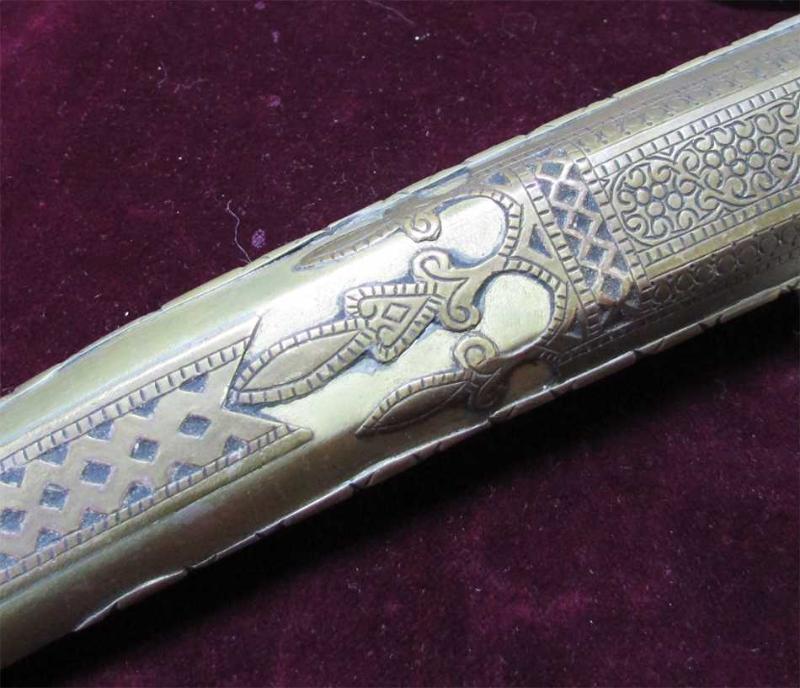 ANTİKA,, KUZEY AFRİKA ÇÖLLERİ YÖRESEL CEMBİYE-KAMA, ÜZERİ HARİKA SANATLI İŞLEMELİ ORJİNAL PİRİNÇ KAPLAMA KINLI, NAMLU ÇELİĞİ KALİTELİ VE ETLİ,NAMLU UCU KUŞ MOTİFLİ, KUŞAK BAĞLAMA UÇKURU ÜZERİNDE, SAĞLAM VE ÇOK İYİ KONDÜSYONDA DETAYLARI ÜRÜN RESİMLERİNDE BIÇAK UZUNLUĞU 42cm,KINLI UZUNLUK 45cm