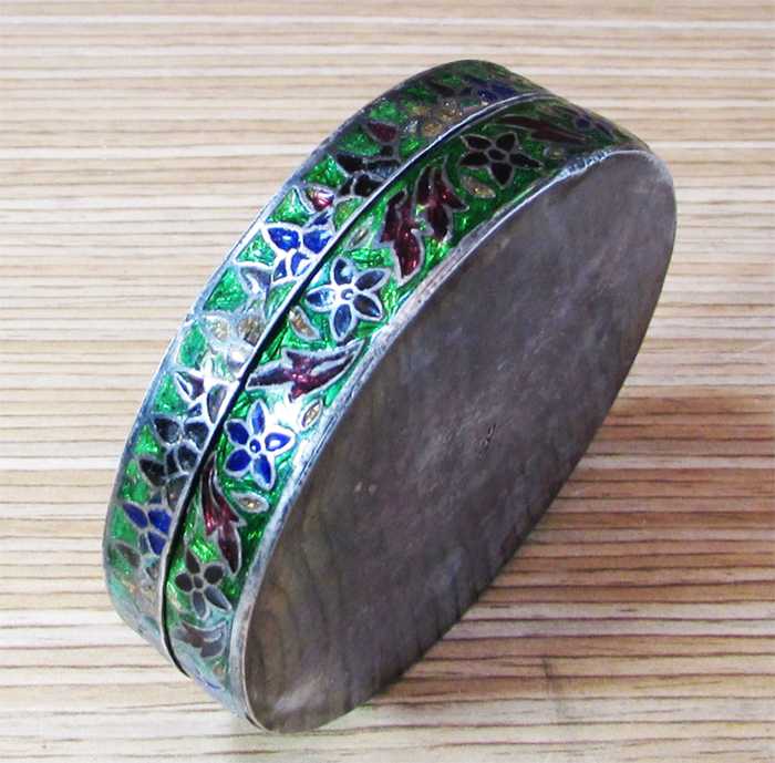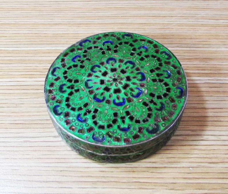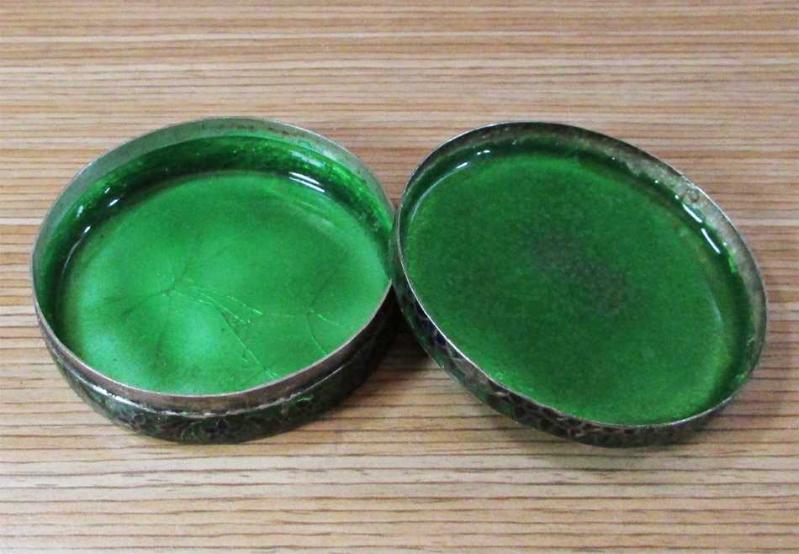 ESKİLERDEN, 925 AYAR DAMGALI MİNELİ GÜMÜŞ KUTU, KAPAK ÜSTÜ VE KENARLARI HARİKA MİNE DESENLİ, SAĞLAM VE TERTEMİZ, KENAR YÜKSEKLİĞİ 18mm,ÇAP GENİŞLİĞİ 6,5cm, AĞIRLIĞI 62,4gr