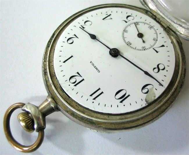1912-16 YILLARININ İSVİÇRE İMALATI ANTİKA OMEGA CEP SAATİ HER NE KADAR DAMGA OLMASADA,KASASI GÜMÜŞ KAPLAMA ÖN CAM KAPAKLI SAĞLAM KASALI,TEMİZ MEKANİZMALI PORSELEN KADRANLI KADRANINDA ÇOK KÜÇÜK BİR TAMİRATLA,ÇOK İNCE TÜYÜ VAR GENEL OLARAK ÇOK TEMİZ BİR SAAT DAKİK ÇALIŞMAKTA VE SAAT TUTMAKTA KASA ÇAPI 5cm KURMA KOLLU YÜKSEKLİĞİ 6,5cm