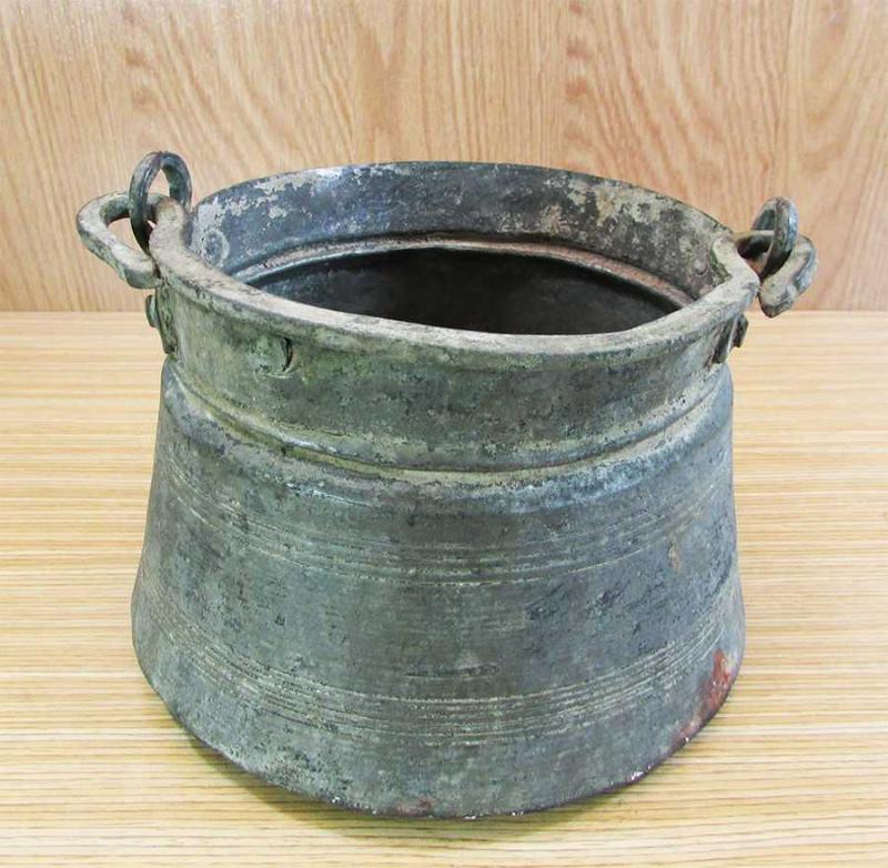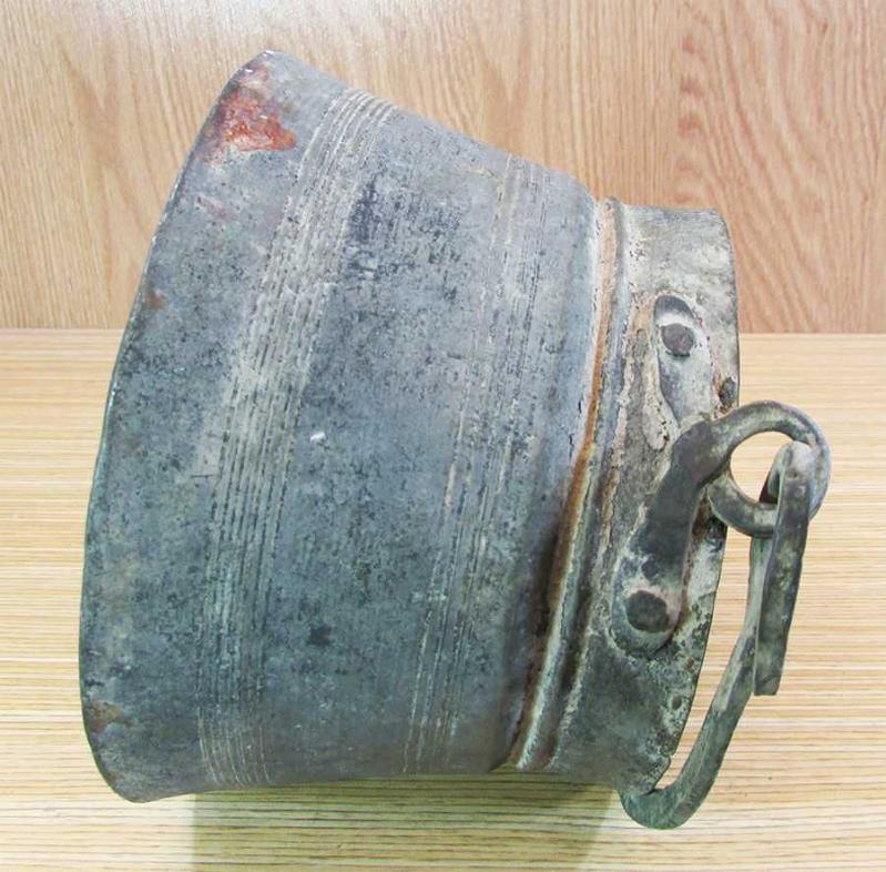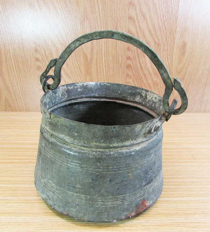 ANTİKA OSMANLI BAKIR ÇİZGİ DESENLİ BAKRAÇ-HELKE SAP DAHİL TAMAMI BAKIRDIR KALIN ETLİ YAPILI,GEÇME TABANLI USTA İŞÇİLİKLİ OLDUKÇA YAŞLI BİR BAKIR TEMİZLENMEMİŞ DOĞAL HALİ İLE SAĞLAM VE ÇOK İYİ KONDÜSYONDA SAPI HARİÇ SADECE KENAR YÜKSEKLİĞİ 12cm AĞIZ GENİŞLİĞİ 15cm,TABAN GENİŞLİĞİ 18cm