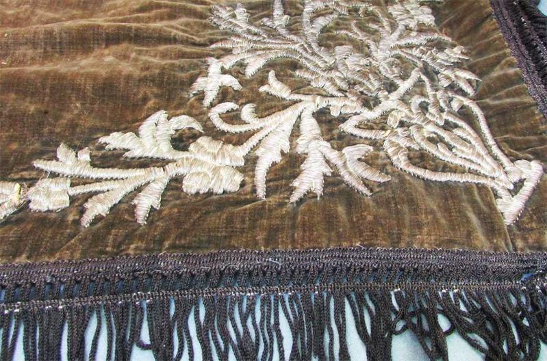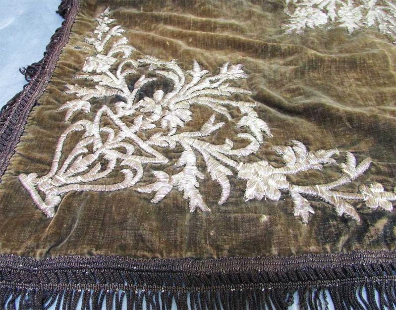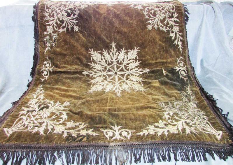 OLDUKÇA YAŞLI, ANTİKA OSMANLI KADİFE ÜZERİNE, SIRMA BİNDALLI İŞLEMELİ BOHÇA ARKASI ASTARLI,KENARLAR DÜZGÜN SAÇAKLI, GENEL OLARAK SAĞLAM VE İYİ KONDÜSYONDA, BU KADAR YAŞLI BİR ÜRÜNDE, UFAK TEFEK,BİR İKİ KÜÇÜK SÖKÜK VE AYRIKLIK NORMALDİR İŞLEMELERİ DİRİ,YATIK VE GÜZEL YAKLAŞIK EBAT 80cmx80cm