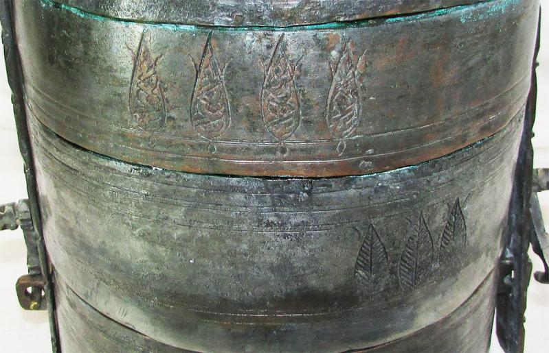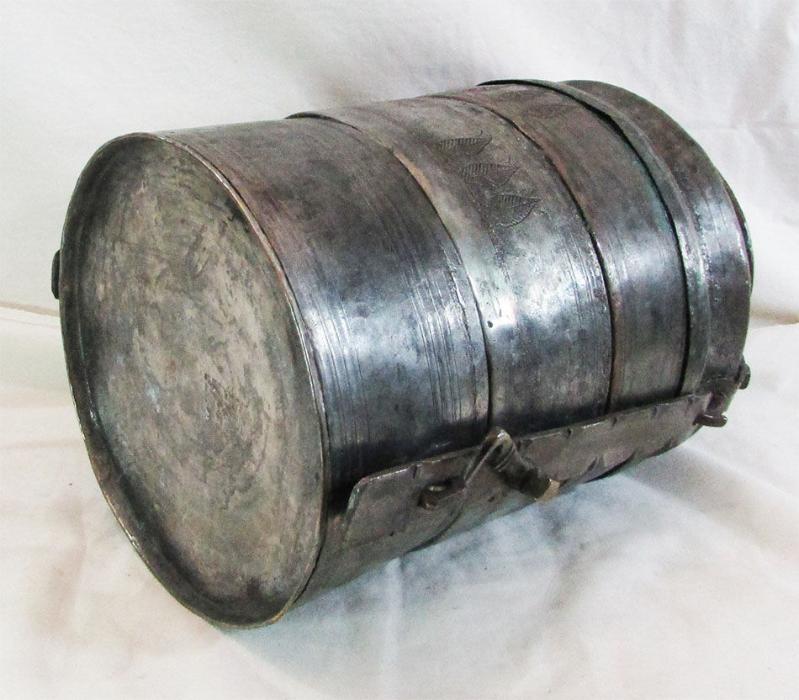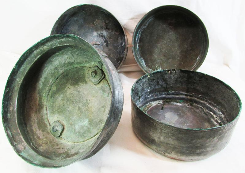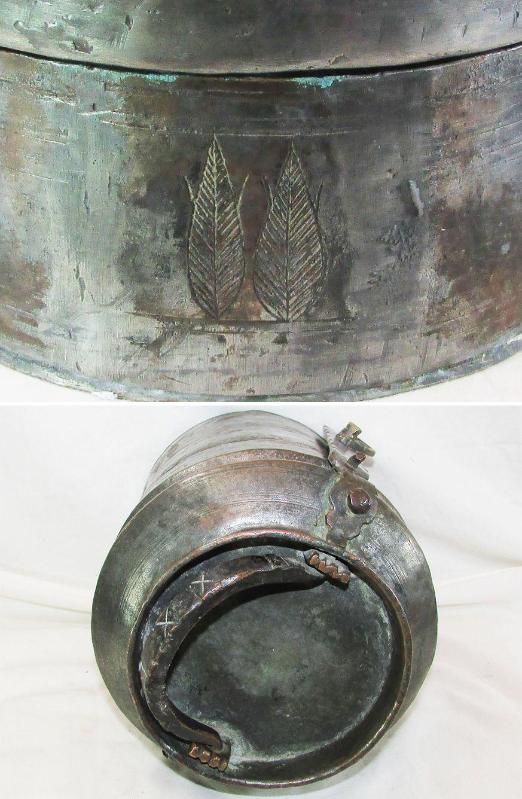 ANTİKA BÜYÜK BAKIR SEFER TASI KALIN İŞLEMELİ BAKIR SAPLI HER TASININ BİR YERİNDE AĞAÇ İŞLEMELERİ VAR KALIN,AĞIR VE DOLGUN YAPILI YILLAR İÇİNDE BAKIM VE TADİLATLAR GEÇİRMİŞ MEVCUDU İLE SAĞLAM VE ÇOK İYİ KONDÜSYONDA DETAYLARI YAKIN ÇEKİM RESİMLERDE YAKLAŞIK GENİŞLİĞİ 20cm,SAPI HARİÇ YÜKSEKLİĞİ 29cm