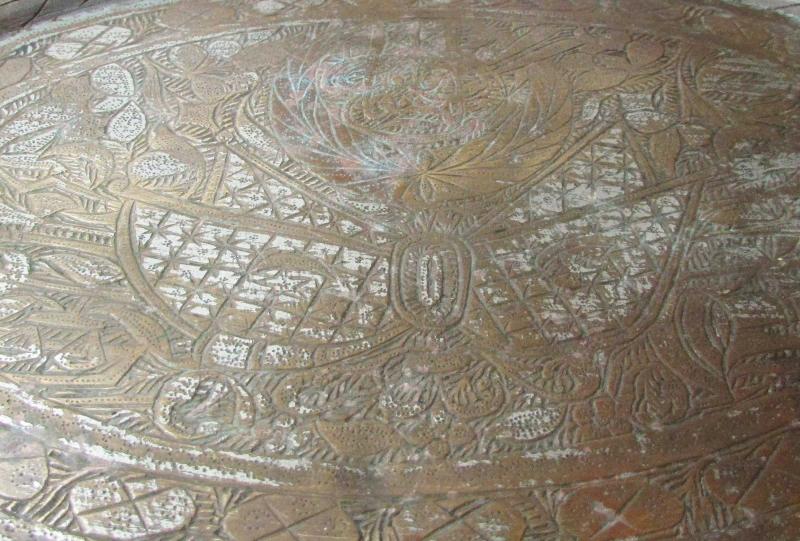 ANTİKA OSMANLI DÖNEMİNDEN ÜZERİ KESKİ İŞLEMELİ OSMANLI DEVLET ARMALI ÜST KISMI TUĞRA FORMUNDA YAZILI NADİR PİRİNÇ TEPSİ SAĞLAM VE İYİ KONDÜSYONDA EBATI 26cmx33,5cm