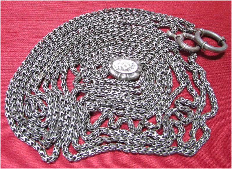 OSMANLI DÖNEMİNDEN, ARNAVUT ZİNCİRLİ SÜRGÜLÜ GÜMÜŞ SAAT KÖSTEĞİ, SAĞLAM VE ÇOK İYİ KONDÜSYONDA, ÇİFT SIRALI UZUNLUĞU 14cm,TÜM ZİNCİR BOYU 280cm AĞIRLIĞI 98gr
