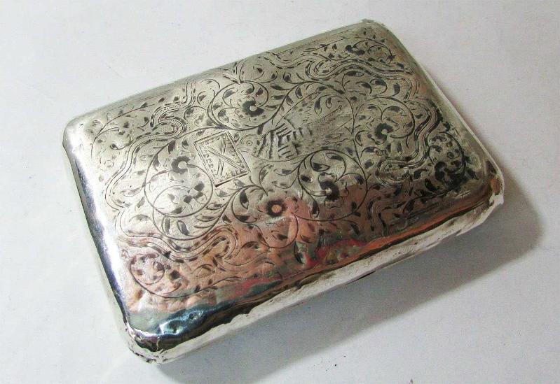 1800 LER ANTİKA OSMANLI KULA RUM İŞİ SAVAT İŞLEMELİ VE MOTİFLİ GÜMÜŞ TÜTÜN TABAKASI ÖN YÜZÜ SÜPER FLORAL DESENLİ ARKA YÜZÜ,AĞZINDA MEKTUP TAŞIYAN KUŞ MOTİFLİ KAPAK İÇİNDE BİRAZ SİLİKLEŞMİŞ RUMCA DAMGASI GÖRÜLMEKTE GÜMÜŞÜ YÜKSEK AYARDIR KÖŞELERİNDE,KULLANIMINDAN KALMA VURUKLAR VAR BİR KÖŞESİNDE DE MİNİK BİR DELİK MEVCUT TÜM DETAYLAR ÜRÜN RESİMLERİNDE GÖRÜLMEKTE YAKLAŞIK KALINLIĞI 2,5cm YÜZEY EBADI 6,5cmx9,5cm YAKLAŞIK AĞIRLIĞI 115gr NADİR-KOLEKSİYONLUK