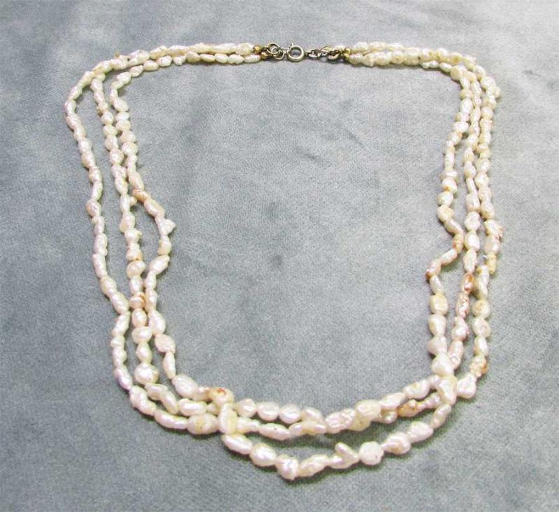 OSMALI DÖNEMİNDEN KALMA YAŞLI VE GÜZEL VE 3 DİZİLİ KUM İNCİSİ GERDANLIK, SAĞLAM VE TEMİZ, AĞIRLIĞI 17gr GERDANLIK UZUNLUĞU 41cm
