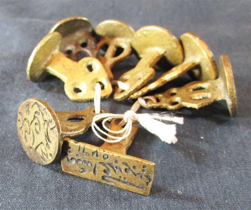 ANTİKA OSMANLI PİRİNÇ VE BRONZ ÇOK GÜZEL MÜHÜR LOTU, MİNİ BİR KOLEKSİYON, TOPLAM 8 ADET, TARİHLİ VE SANATKAR İŞİ YAZILI HEPSİ SAĞLAM VE YÜKSEK KONDÜSYONDA , DETAYLARI RESİMLERDE, AĞIZ ÇAP GENİŞLİKLERİ 17-18mm CİVARI "HEPSİ ORJİNALDİR,REPLİKA DEĞİLDİR"