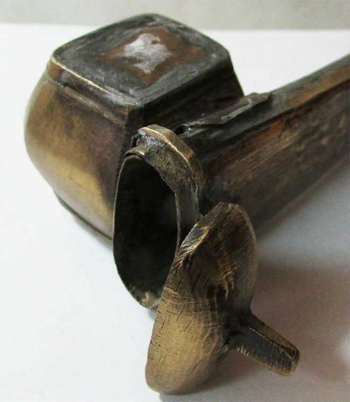 ANTİKA OSMANLI PİRİNÇ DİVİT GERÇEK ORJİNAL OSMANLI DÖNEMİNE AİTTİR REPLİKA DEĞİLDİR ZAMAN İÇİNDE TAMİRLER GEÇİRMİŞ OLUP HOKKA KAPAĞI NOKSANDIR YÜKSEKLİĞİ 3cm,UZUNLUĞU 23,5cm HALİ İLE UYGUN FİYATTAN..