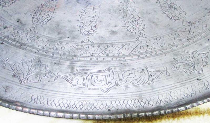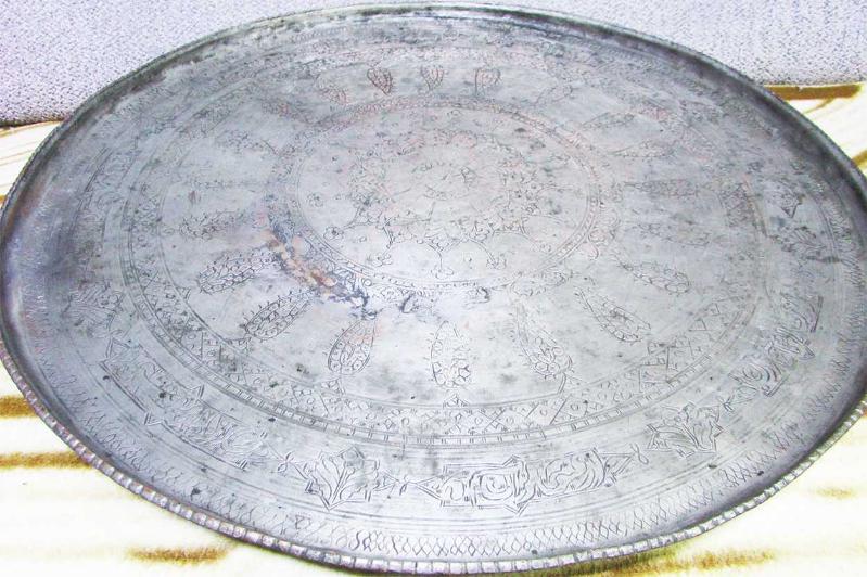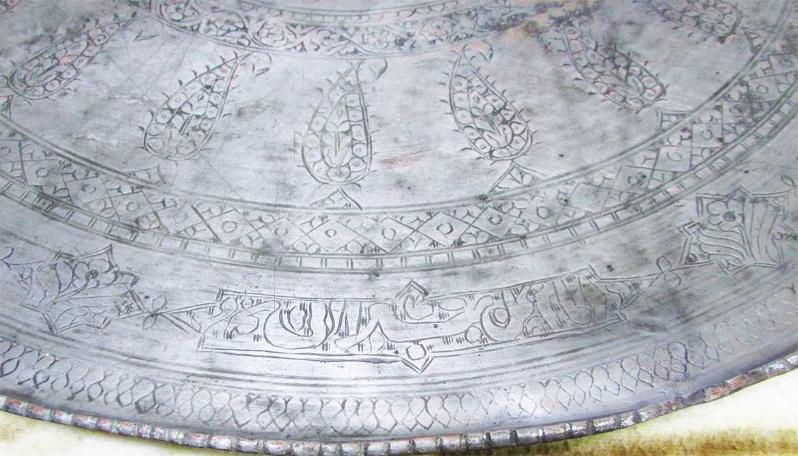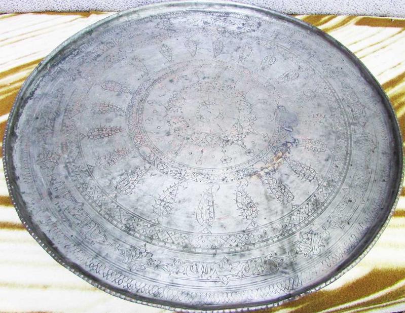 OSMANLI DÖNEMİ,ÇOK YAŞLI, ANTİKA SÜPER KALEM VE KESKİ İŞLEMELİ, YAZILI,MOTİFLİ VE BOL OSMANLICA YAZILI, ÇOK NADİR KOLEKSİYONLUK TEPSİ-SİNİ, YAZILAR KENARLARDA,AYRI AYRI ÇERÇEVE İÇİNE ALINMIŞ, YILLAR İÇİNDE USTA İŞİ UFAK TEFEK TAMİRATLAR GEÇİRMİŞ, MEVCUDU İLE SAĞLAM VE İYİ KONDÜSYONDA, DETAYLAR ÜRÜN RESİMLERİNDE, BİR GÜZEL SİLİNİP TEMİZLENİRSE SÜPER OLACAKTIR, AĞIRLIĞI 3,5kg CİVARİ, KALIN VE DOLGUN YAPILI, ÇAP GENİŞLİĞİ 58cm