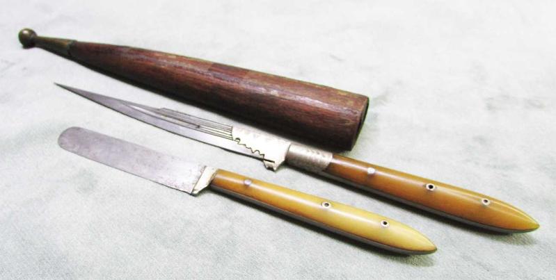 OSMANLI DÖNEMİNDEN KALMA, ANTİKA SÜRMENE KEMİK SAPLI HARİKA İKİLİ BIÇAK TAKIMI ORJİNAL AĞAÇ KININDA, HEPSİ SAĞLAM VE ÇOK İYİ KONDÜSYONDALAR, DETAYLARI ÜRÜN RESİMLERİNDE, UZUNLUKLARI 14,5cm VE 20,5cm KINLI UZUNLUK 24m