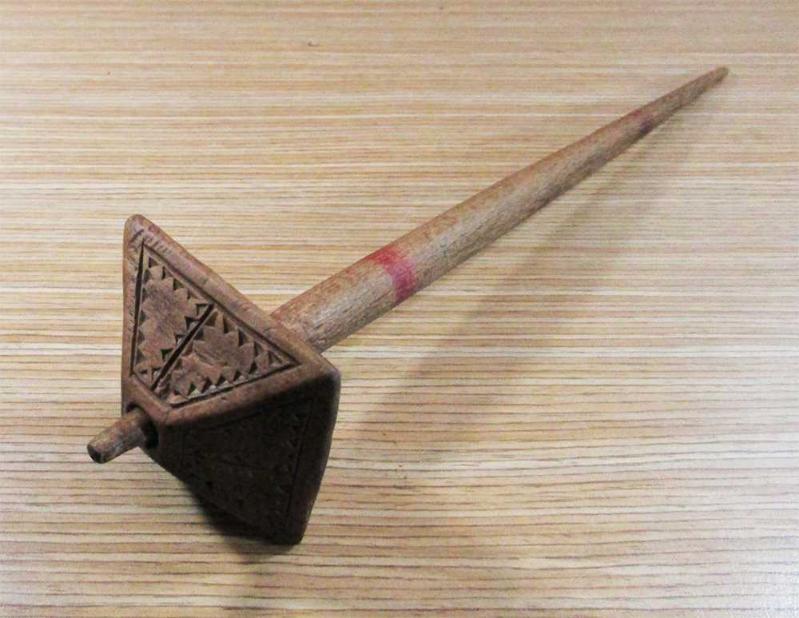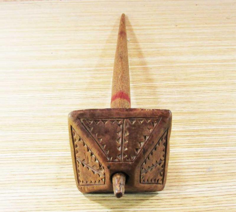 OSMANLI DÖNEMİ ANTİKA YÜN EĞİRME İĞİ-teşik DÖNEMİNİN EL İŞLEMELERİ İLE SÜSLENMİŞ, KÖK BOYA İLE RENKLENDİRİLMİŞ SAĞLAM VE ÇOK İYİ KONDÜSYONDA GÖBEK GENİŞLİĞİ 5,5x5,5cm ÇUBUK UZUNLUĞU 29cm KOLEKSİYONLUK