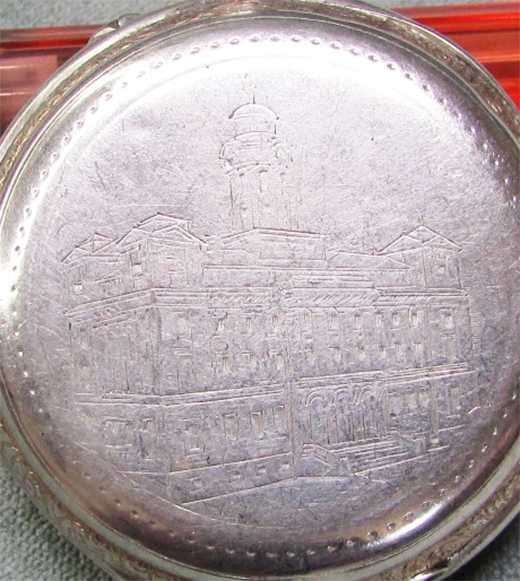 1900 BAŞLARI İSVİÇRE ÖZEL YAPIM ÇOK GÜZEL GÜMÜŞ KURMALI CEP SAATİ, KAPAK ÜZERİNE KALEM İŞİ OLARAK SARAYA BENZER SANATLI RESİM YAPILMIŞ, TOZ KAPAĞI ÜZERİNDE DE ÖZEL BİR YAZI VAR,SANIRIM İLK SAHİBİ İLE İLGİLİ, KAPAK İÇİ "800 AYAR" GÜMÜŞ VE LOGO DAMGALI, ALTIN MOTİFLİ PORSELEN KADRANINDA İKİ DOLGUSU OLMASINA RAĞMEN OLDUKÇA İYİ, AKREP YELKOVAN ALTIN YA DA ALTIN KAPLAMA, MEKANİZMASI TEMİZ,AMA ÇALIŞMIYOR,KURMA KOLU NOKSAN, DETAYLARI ÜRÜN RESİMLERİNDE, GEREKLİ TAMİRİ GÖRDÜĞÜNDE DEĞERLİ BİR SAAT OLUR, KASA KALINLIĞI 16mm,ÇAPI 48mm, "ARIZALI VE PARÇALI ÜRÜN OLDUĞU İÇİN Hali İle Satıştır" "KESİNLİKLE İADE KABUL EDİLMEZ"