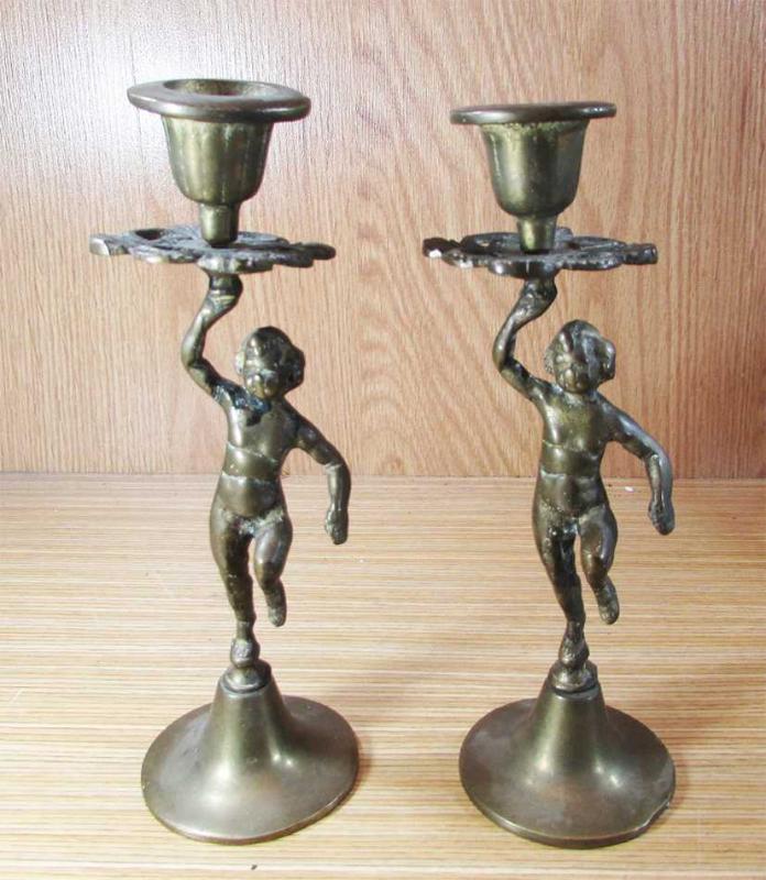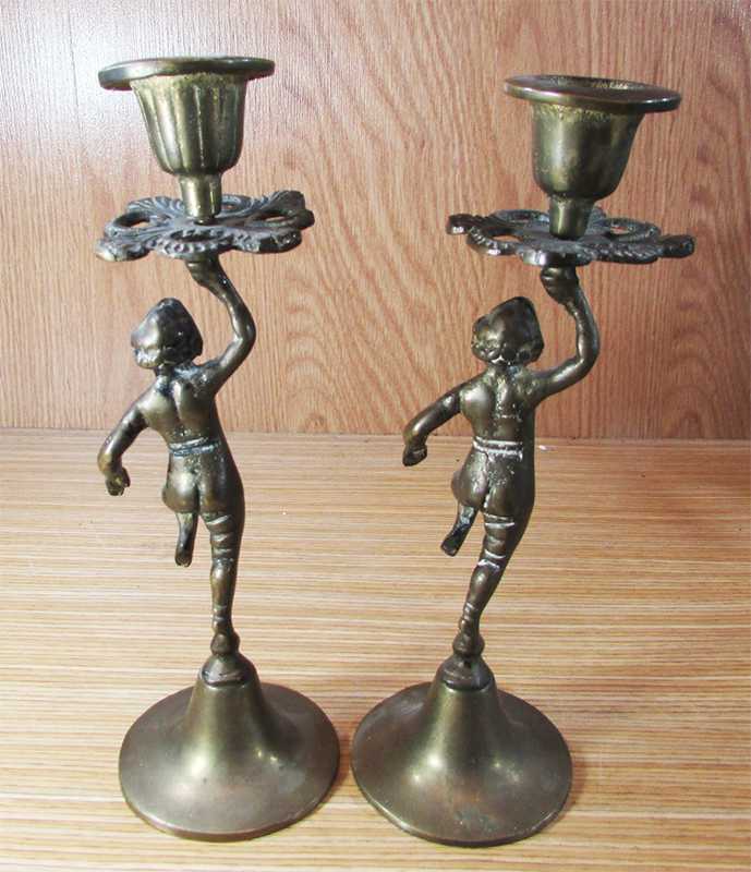 AnTiKa PİRİNÇ ÇoCuK FiGüRLü MUMLUK-ŞAMDAN....ÇİFT başlıklı antika/koleksiyon objesi Avrupa menşe’lidir. 1940 sonrası dönemine aittir.