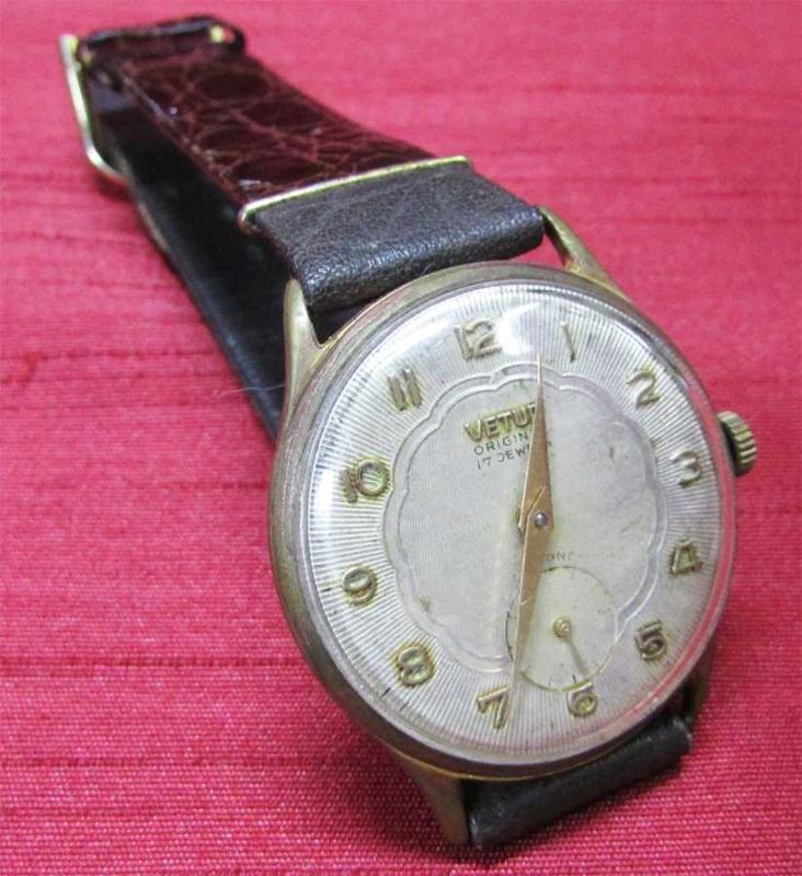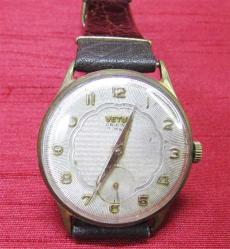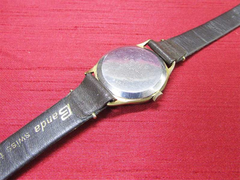 1950-60 LI YILLARIN İMALATI, "VETUR" KURMALI KOL SAATİ, ORIGINAL 17 JEWELS, ALTIN KAPLAMA KASALI MADE IN SWİSS HER YÖNÜ İLE TEMİZ BİR SAAT BAKIMLARI YAPILMIŞ VAZİYETTE, KULLANILMIŞ DERİ KORDONLU DAKİK ÇALIŞIR VAZİYETTE, KASA EBADI 34x40mm KONDÜSYONU GÖRÜLMESİ AÇISINDAN PEK DÜZGÜN ÇEKEMEDİYSEKTE,DETAYLI VE YAKIN RESİMLER KONMUŞTUR,
