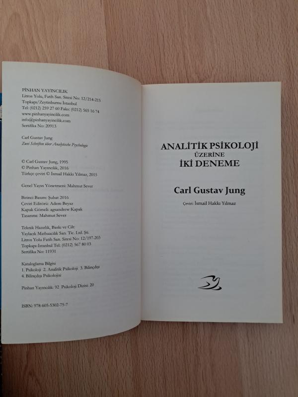 Analitik Psikoloji Üzerine İki Deneme, Carl Gustav Jung tarafından kaleme alınmıştır. Kitap 2022 yılında Pinhan Yayınları tarafından [İstanbul] yayınlanmıştır. Bu baskının çevirisi İsmail Hakkı Yılmaz tarafından yapılmıştır. 341 sayfadır. Sayfa bilgisi 2. hamur olarak belirtilmiştir. Analitik Psikoloji Üzerine İki Deneme adlı eser Türkçe dilindedir.