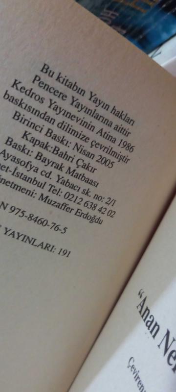 Anan Nerede Ulan, Dimitra Sotiri Petrula tarafından kaleme alınmıştır. Eser Kapak: Bahri Çakır editörlüğünde hazırlanmıştır. Kitap 2005 yılında Pencere Yayınları tarafından [İstanbul] yayınlanmıştır. Bu baskının çevirisi Panoyat Abacı (Yunancadan) tarafından yapılmıştır. Anan Nerede Ulan adlı eser Türkçe dilindedir.