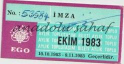 Ankara Belediyesi EGO Aylık Toplu Taşım Bileti [Abonman], Ekim 1983, en son 1 yıl önce güncellenmiştir.