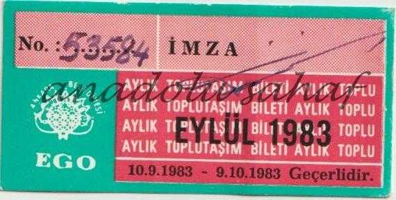Ankara Belediyesi EGO Aylık Toplu Taşım Bileti [Abonman], Eylül 1983, en son 1 yıl önce güncellenmiştir.