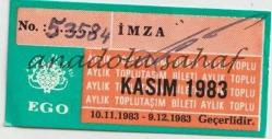 Ankara Belediyesi EGO Aylık Toplu Taşım Bileti [Abonman], Kasım 1983, en son 1 yıl önce güncellenmiştir.
