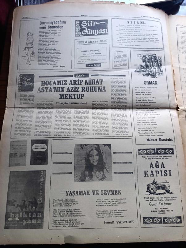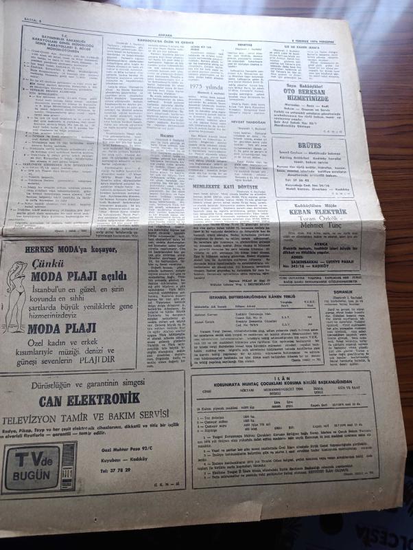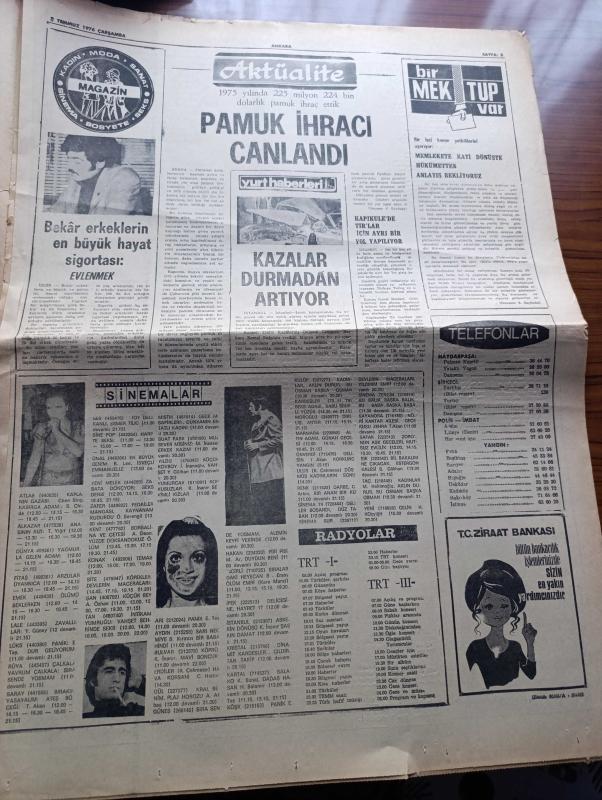 Ankara Gazetesi - Turkish Newspaper - 8 Temmuz 1976 - Elizabeth Taylor ile Zahidi İran'a gidiyor Fotoğrafı - Adalet Partisi genel başkanı Süleyman Demirel Altınözü kongresine mesaj gönderdi - Rauf Denktaş Anadolu Ajansı Kıbrıs bürosunu törenle açtı - Nevzat Tandoğan'ı soyan eşkıya yazan Şemsi Belli - kamboçya'da ölüm ve işkence kol kola - Kızıltoprak köşkte Ülkü Özen Hale Manzade Gönül Gül Atilla Yelken Azra Balkan - saksonyalılarda İnci Sanlı Mihrican Güngör Gülay Gül Papatya - bekar erkeklerin en büyük hayat sigortası evlenmek - televizyonda bugün - kapıkule'de tırlar için ayrı bir yol yapılıyor - dünyanın en tatlı kadını filmi Mıstık sinemasında - en büyük benim başrolde Bruce Lee Ünal sinemasında - Estergon kalesi filmi başrolde Serdar Gökhan Şık sinemasında - hocamız Arif Nihat Asya'nın ruhuna mektup yazan Hüseyin Rahmi Kılıç - duramayacağım seni öpmeden Yazan Yunus Yaşar - orman şiiri yazan Mehmet Karabulut - yaşamak ve sevmek şiiri Yazan İsmail Yaltırık - Kıbrıs trajedisi adlı eser, Kitap > Süreli Yayınlar > Gazeteler > Türkiye > Genel > Günlük kategorisinde İkinci El olarak satıştadır.