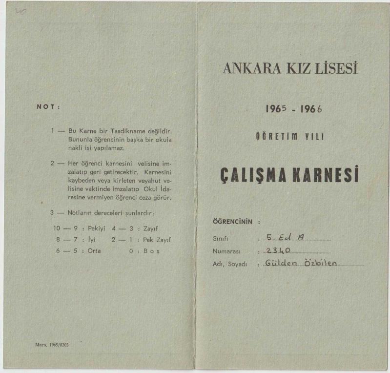 Ankara Kız Lisesi 1965-1966 Öğretim Yılı Çalışma Karnesi [Eğitim Tarihi], en son 1 yıl önce güncellenmiştir.