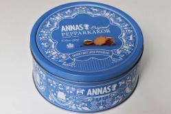 Annas Pepparkakor baskılı İsveç teneke kurabiye kutusu. Kondisyonu iyi. Çapı 20cm. Y 8,5cm .