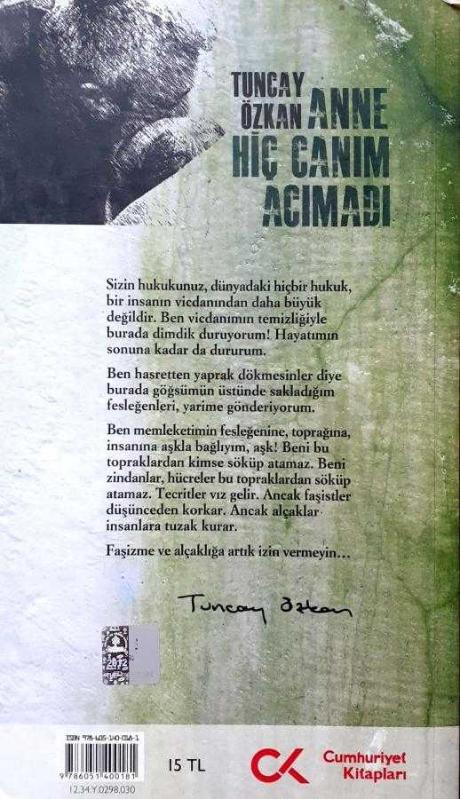 Anne Hiç Canım Acımadı, Tuncay Özkan tarafından kaleme alınmıştır. Kitap 2012 yılında Cumhuriyet Kitapları tarafından yayınlanmıştır. 225 sayfadır. Anne Hiç Canım Acımadı adlı eser Türkçe dilindedir.