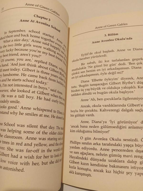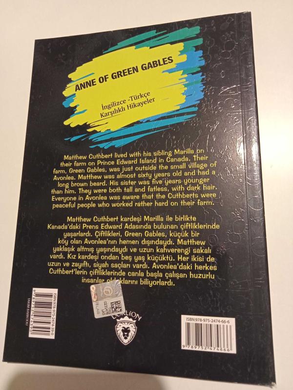 Kitap 2018 yılında Dorlion tarafından yayınlanmıştır. 60 sayfadır. Anne Of Green Gables (ingilizce-türkçe karşılıklı hikayeler) adlı eser İngilizce dilindedir. Eserin içeriğinde Türkçe dilinde bölümlere de yer verilmektedir.