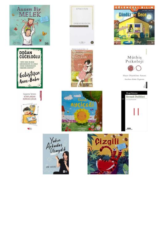 Annem Bir Melek - Enkheiridion: Hasan Ali Yücel Klasikler Dizisi - Eğlenceli Bilim – Gündüz ve Gece - Geliştiren Anne-Baba: Anne-Baba Olarak Çocuğunuzun En Güçlü Tanığı Olduğunuzun Farkında mısınız? - Geçmişe Yolculuk: Modern Klasikler Serisi - Hayır Diyebilme Sanatı: Sınırların Kadar Özgürsün - Kitaplardan Korkan Çocuk - Küçük Ayçiçeği - Sevmek Dedikleri - Yakın Arkadaş Olsaydık - Çizgili