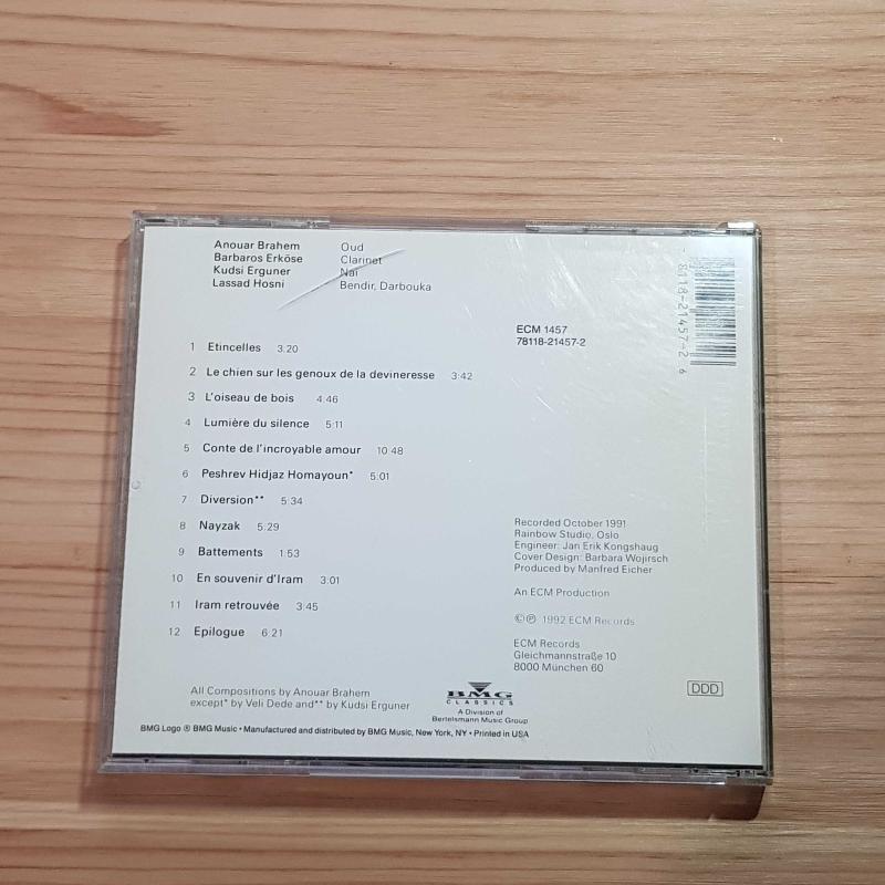 1. Etincelles 2. Le chien sur les genoux de la devineresse 3. L'oiseau de bois 4. Lumiere du silence 5. Conte de l'incroyable amour 6. Peshrev Hidjaz Homayoun 7. Diversion 8. Nayzak 9. Battements 10. En souvenir d'Iram 11. Iram retrouvee 12. Epilogue