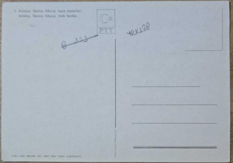 Antalya Demre (Myra) Kaya Mezarları, PTT başlıklı ürün, Efemera, Müzik, Sinema > Kartpostallar > Şehir Kartpostalı > 1960 ve sonrası kategorisi altında İkinci El olarak satılmaktadır.
