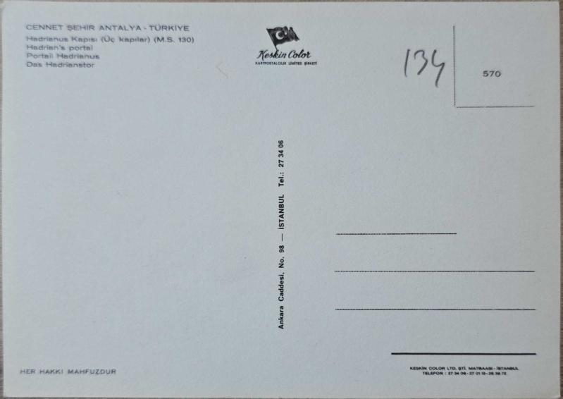 Antalya Hadrianus Kapısı (Üç Kapılar) başlıklı ürün, Efemera, Müzik, Sinema > Kartpostallar > Şehir Kartpostalı > 1960 ve sonrası kategorisi altında İkinci El olarak satılmaktadır.