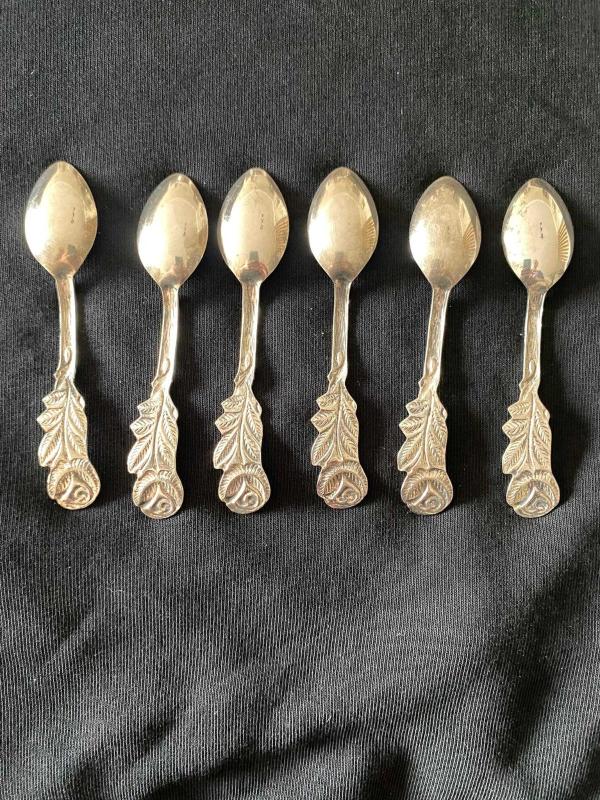 Bu kaşıklar 60'lardan beri aile koleksiyonumuzda. Ürünler vitrin ürünü olup hiç kullanılmamıştır. Çelik üzerine gümüş kaplamadır. Damgaları yoktur. Fiyat 6 adet içindir. Nostalji ve antika çay takımlarını sevenler için muhteşem kaşıklardır. Bu şık ve zarif kaşıkları koleksiyonunuza mutlaka eklemelisiniz.