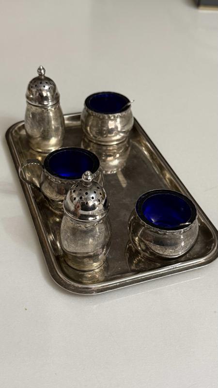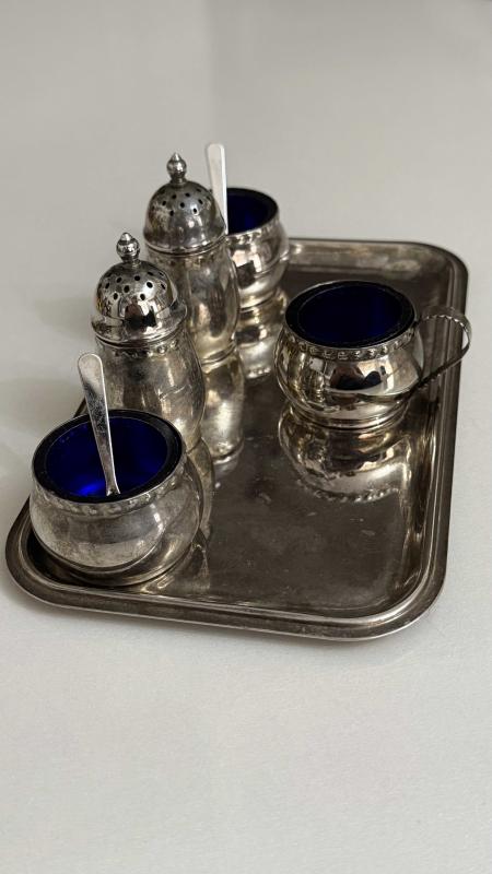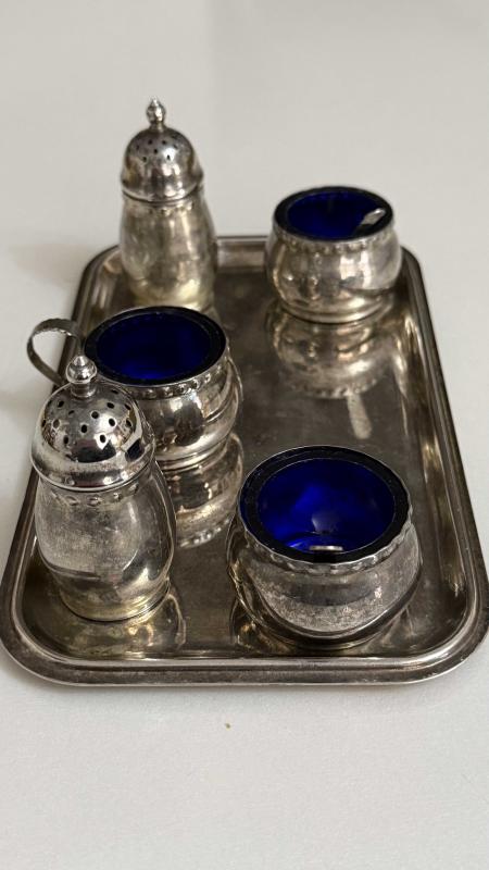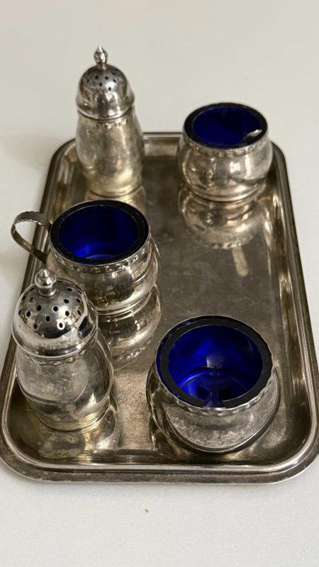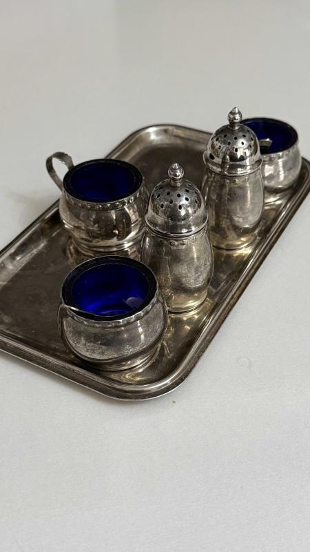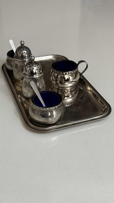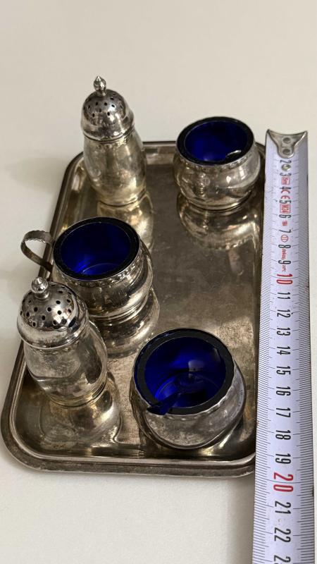 Antik House markalı, gümüş kaplama bu tuzluk ve baharatlık seti, zarif tasarımıyla sofralarınıza şıklık katacaktır. Mavi cam detayları ve özel işçiliğiyle dikkat çeker. Kahvaltılık veya dekoratif amaçlı kullanıma uygundur.