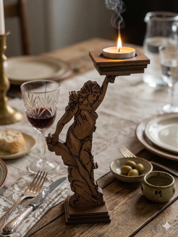 ✨Antik heykel formlu ahşap mumluk... başlıklı antika/koleksiyon objesi Türkiye menşe’lidir. 2000 ve sonrası dönemine aittir.